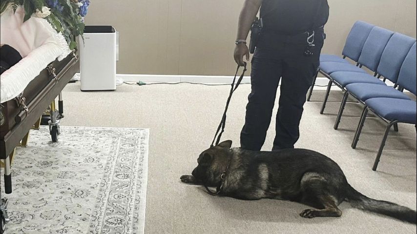 The department shared a photo of Boutte's K9 officer Dino sitting by his casket, not wanting to leave his partner.