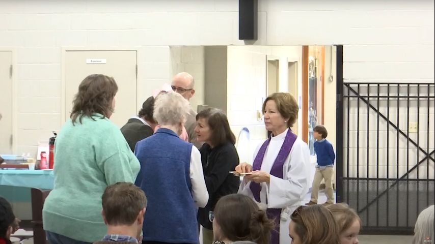 BATON ROUGE - Congregation members gathered in the gym at St. Luke's Episcopal on Sunday morning to worship.
