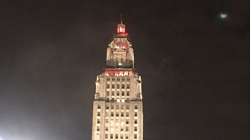BATON ROUGE – A vibrant, red glow from the beacon at the top of the State Capitol will be seen through Sunday.