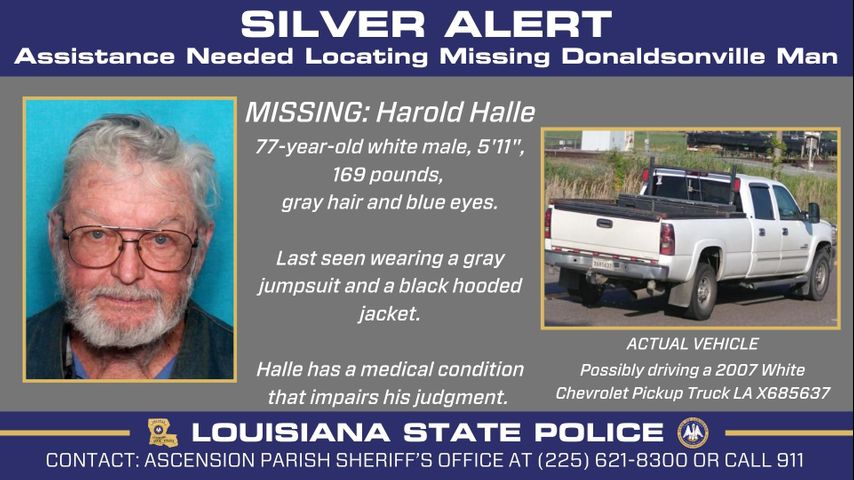 DONALDSONVILLE — Louisiana State Police have issued a Silver Alert for a missing 77-year-old man from Donaldsonville.