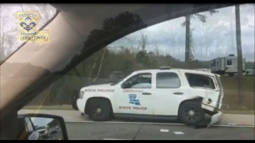 It was all caught on camera. The trooper was parked on the side of Interstate 12 in Livingston Parish when the driver veered off the right lane and crashed into the back of the unit.