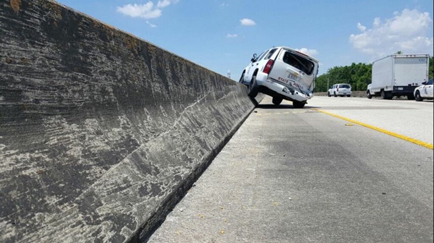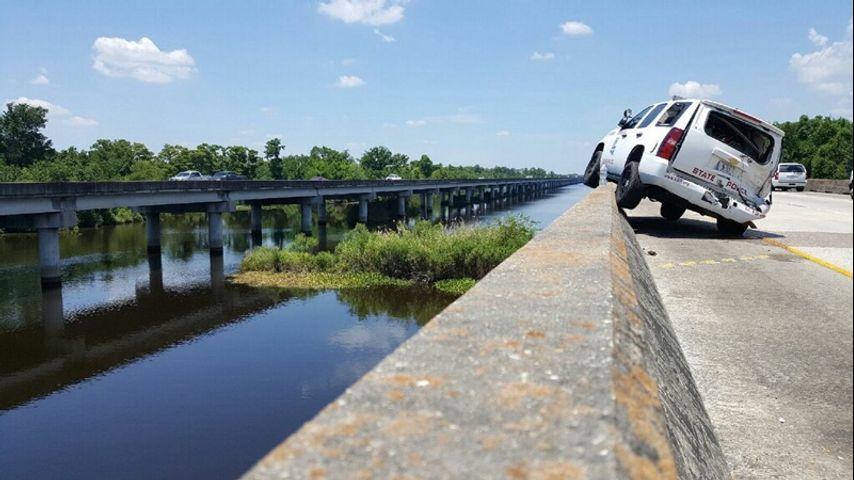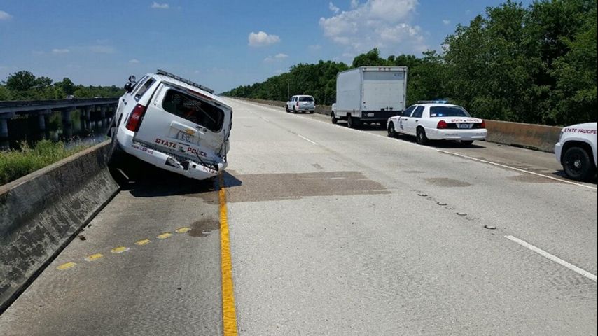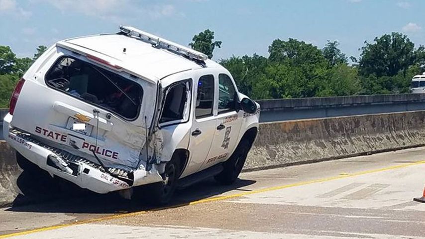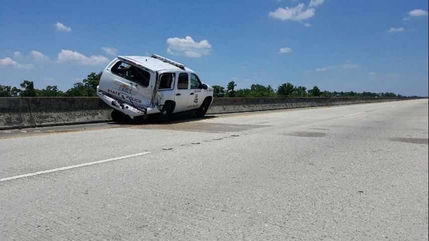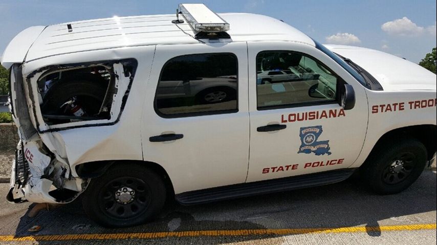 The parked LSP patrol SUV spun and hit the trooper who was standing close by. She was airlifted to New Orleans by helicopter where she is listed in stable condition with moderate injuries.