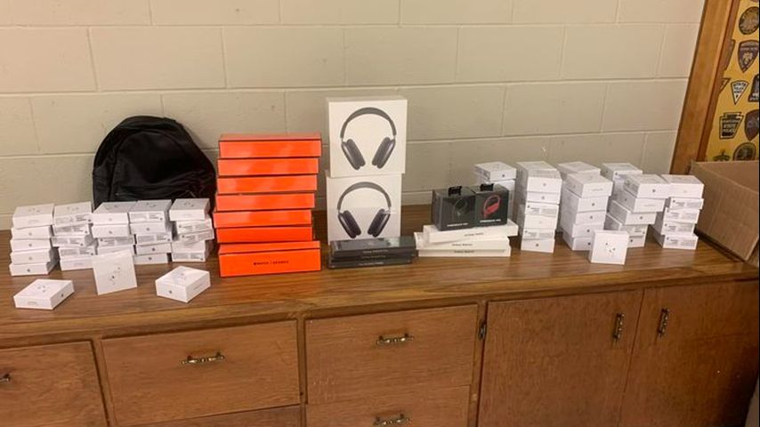 Troopers said Derks had $35,000 worth of stolen goods from a consumer electronics retailer. A picture of the stolen merchandise shows more than 60 pairs of Air Pods, 8 Apple Watch bands by Hermes, six Galaxy watches and, two pairs of Bose earbuds, and two pairs of over-the-ear Apple headphones.