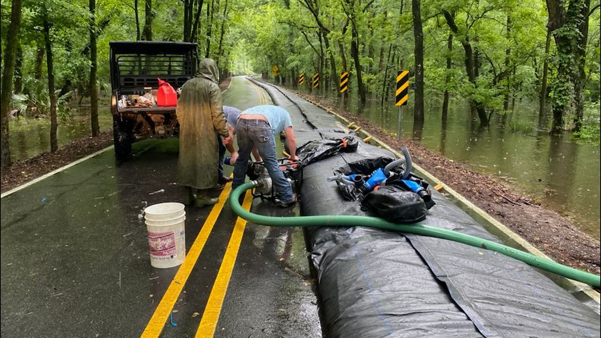 Wilson said he's grateful for the aqua dams. Parish leaders said the flooding across the road is the first time it's happened since 2016.