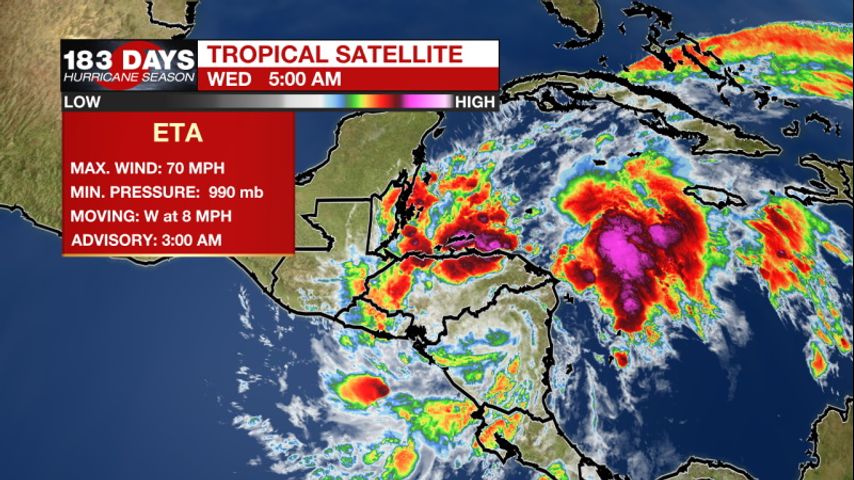 Overnight, Eta was downgraded to a tropical storm as it moved over Nicaragua. This storm will move throughout Central America and it is likely to re-enter the Caribbean over the weekend. Some strengthening will be possible at that point, but that won’t be until the weekend. Click here to see the latest forecast cone. It is possible that this storm will move into the eastern Gulf next week. With the current forecast information, this storm is likely to stay well east of Louisiana. The WBRZ Weather Team is keeping a close eye on it and will keep you up to date with the latest information.