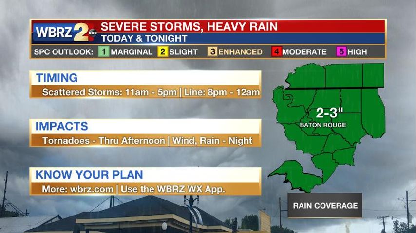 A two-part, two-pronged weather event threatens the area with severe storms and heavy rain today. Be safe, review your severe weather plans.