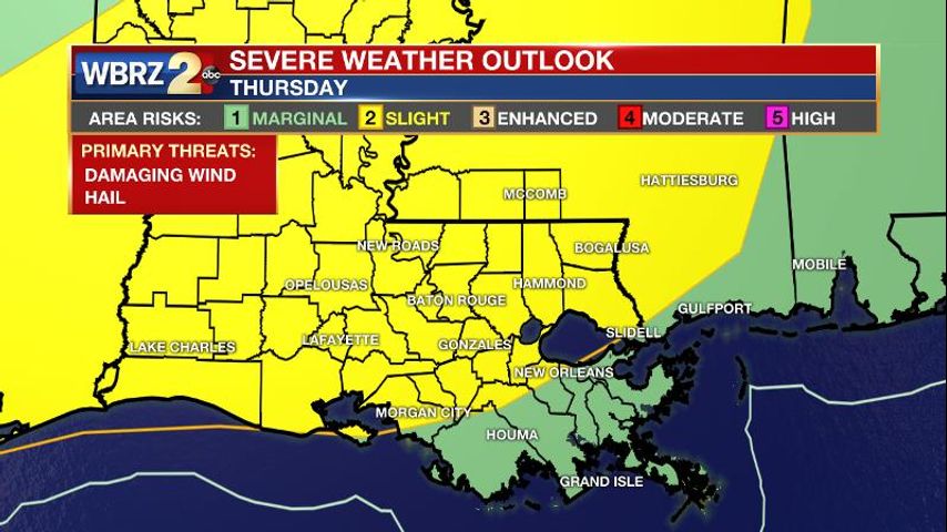 While one day of showers and thunderstorms is behind us, a few stronger rounds are on the horizon. The active pattern will last through at least Sunday. The National Weather Service will investigate damage created by a rogue storm cell in East Baton Rouge and East Feliciana Parish on Wednesday evening. Tree and structural damage occurred as a tornado warned storm passed over around 6pm. Stay tuned to find out the NWS survey results.