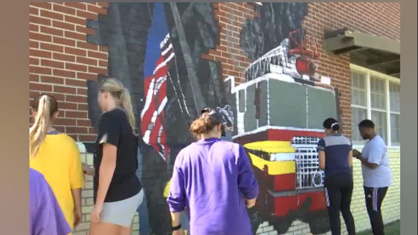 Student athletes, local first responders create mural honoring 9/11 victims and heroes