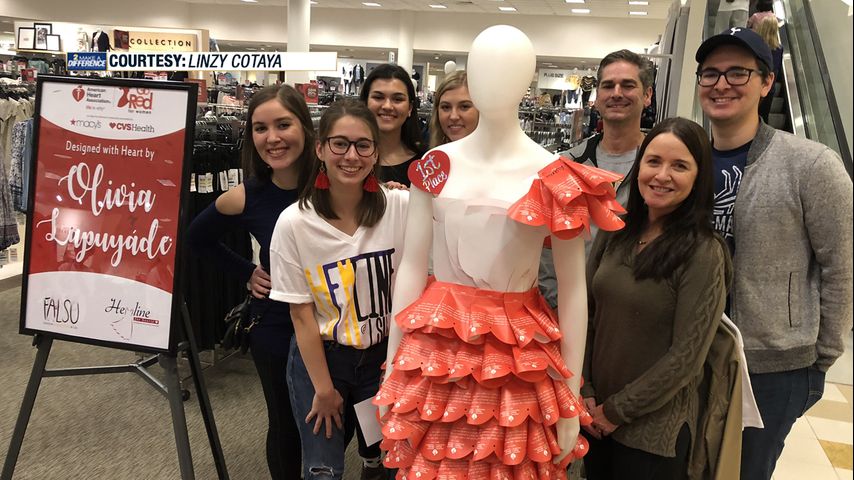 The American Heart Association sponsored the Hemline for Hearts paper dress competition at Macy's. Students studying textiles, apparel, and merchandising were tasked with creating dresses no fabric, only paper heart.