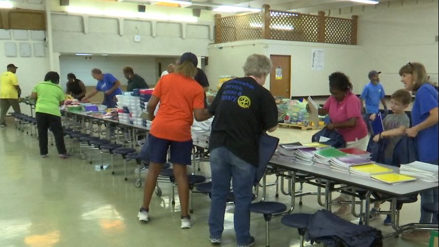 Volunteers filled backpacks at the former Westminster Elementary School for students across the East Baton Rouge school district.