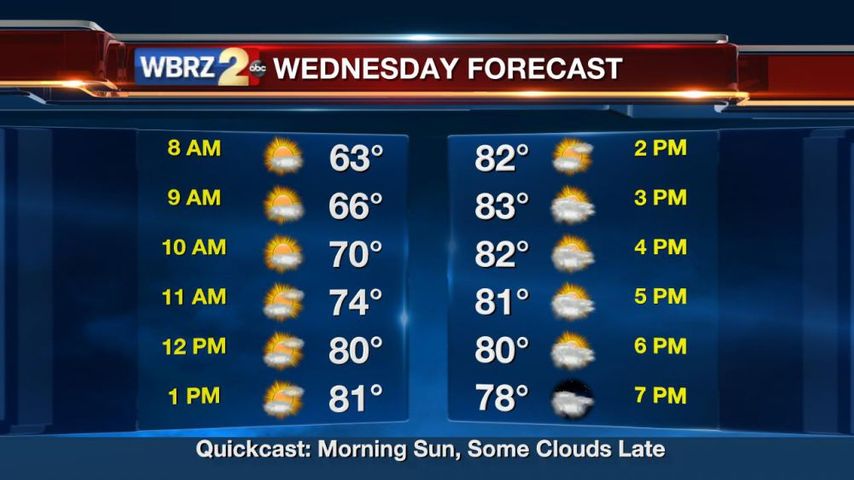 Today and Tonight: The standard is maintained into Wednesday. Expect sunshine with just a few clouds pulsing up in the afternoon hours. Closer to the coast, there may be just enough moisture for a brief shower, but nothing significant to impact the drought. High temperatures will be in the mid 80s and you might begin to notice some returning humidity. Overnight, we’ll have mostly clear skies with a low in the mid 60s.