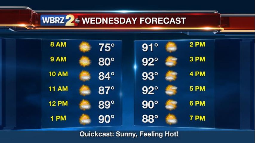While the mornings are starting off with slightly less humidity, an absence of afternoon clouds will keep it feeling hot!