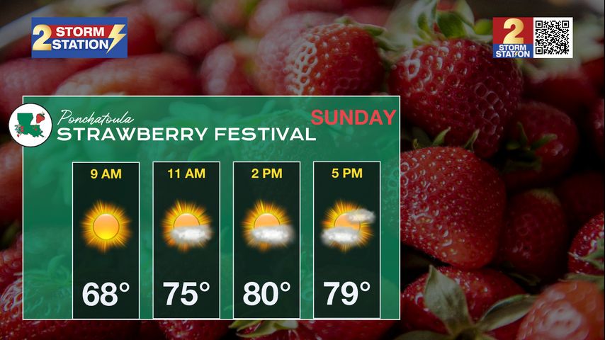 Strawberry Festival: The Ponchatoula Strawberry Festival continues Sunday with excellent weather—plenty of sunshine and warm temperatures in the 80s.