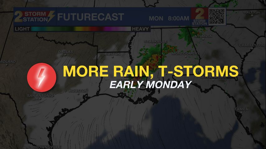 Next Impact: A cold front will drive a line of thunderstorms through Louisiana overnight Sunday, into Monday. Per the latest data, these storms appear to arrive around daybreak and stick around through the Monday morning commute. That said, minor shifts in the local timeline are still possible as the storms have yet to develop. They will do so by early Sunday evening, and the details should be clearer by then. The ingredients will be in place for a few strong storms. The main threat would be gusty winds and perhaps a brief spin-up tornado or report of hail up to quarter-size. This is not something everyone would see, only a few point locations.