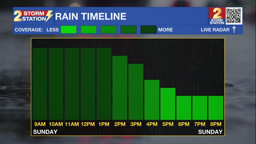 Showers will be likely for most of the day, with not many breaks expected. Moving into next week, we will dry out, and also increase our temperatures.