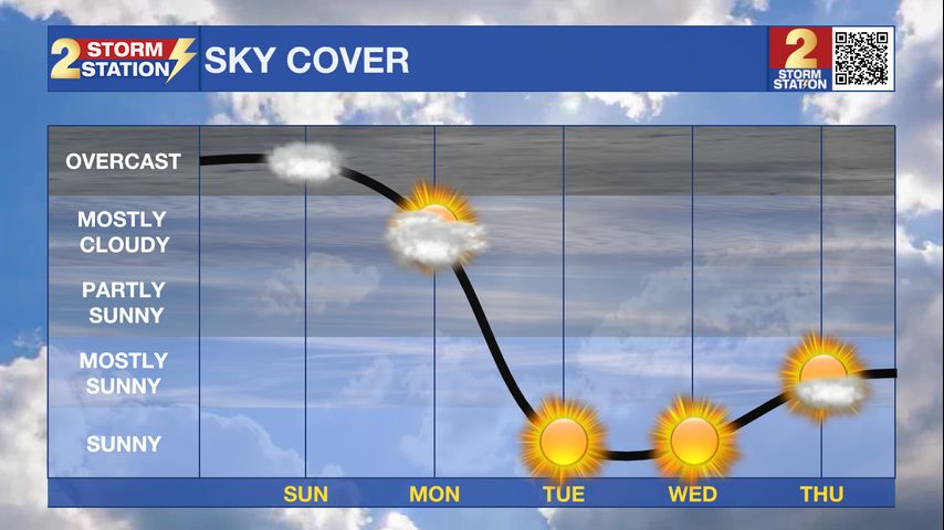 Up Next: Monday will be cool, with highs struggling to get past the mid-60s. Still, clouds are expected to be stubborn with breaks of sun becoming a little more common by afternoon. On Tuesday and Wednesday, morning temperatures will drop into the 40s—so you might need a jacket! However, afternoons will be sunny and seasonable with highs in the 70s. The end of the workweek looks fantastic, with plenty of sunshine and temperatures gradually warming, getting back into the 80s by Thursday and Friday.