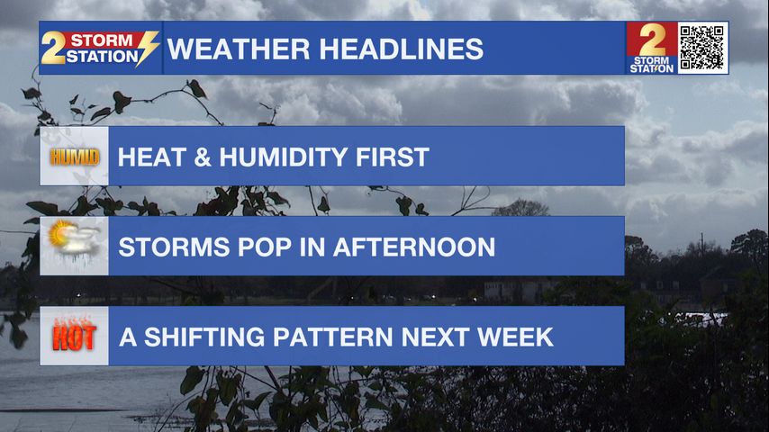 Up Next: The same summer rhythm will continue early next week. We start with the heat and then turn stormy by the afternoon. Changes will occur by the middle and end of the workweek. A high pressure system will begin to strengthen and build over our area. This will lead to a steady decline in rain coverage each day. We likely will not be completely dry, but coverage will be way less. The consequence is that highs will start creeping closer to the mid 90s!
