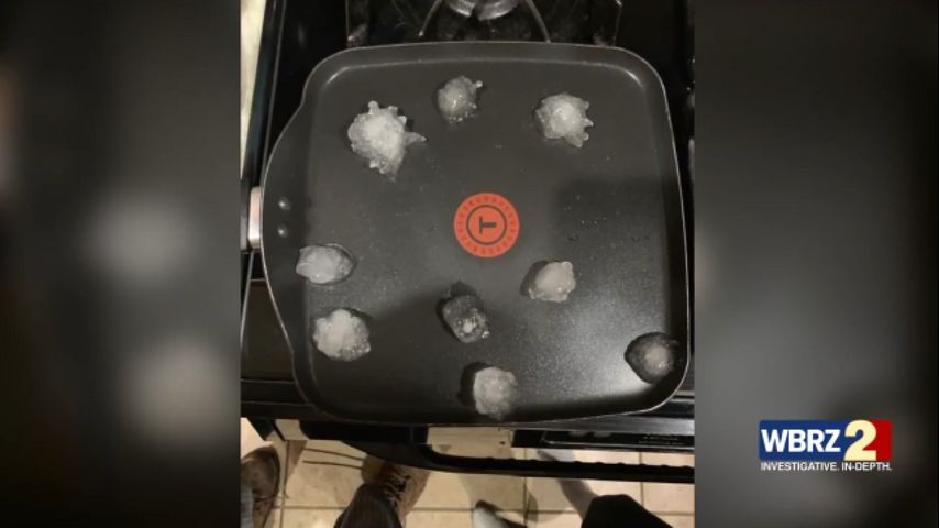 Chunks of hail as big as golf balls were reported in parts of Ascension and Livingston parishes. Cars, homes and personal belongings were pelted and dented by the ice.