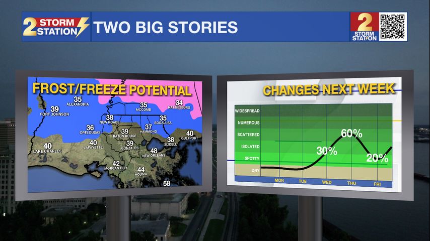Sunday PM Forecast: frost/freeze potential early week, rain returns by Wednesday