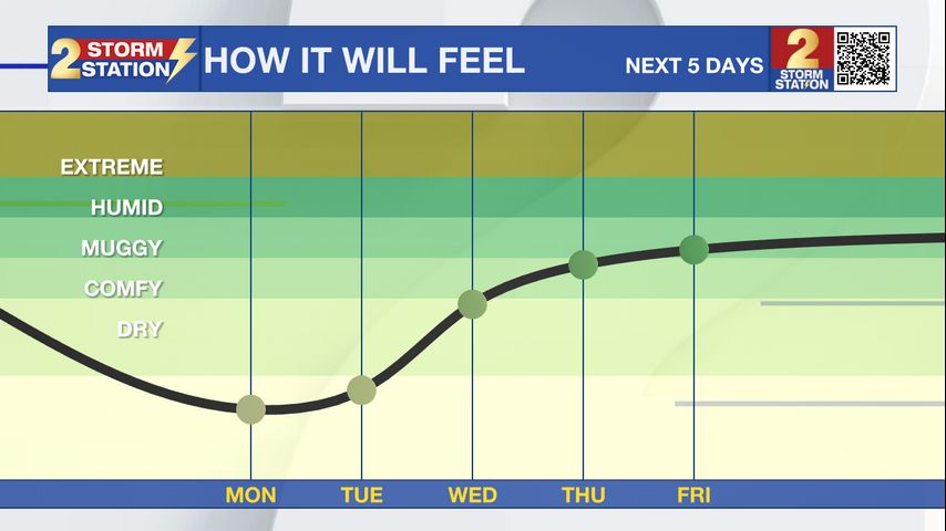 Up Next: As skies clear out into Tuesday morning, temperatures will tumble into the middle and upper 40s, marking the coolest start of the week. However, the mostly clear sky will work to warm highs substantially by afternoon, into the upper 70s. Tuesday looks to be a beautiful and dry day across the board.
