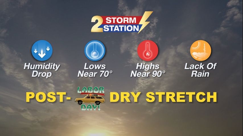 September will kick off quietly. Drier air will bring a more comfortable feel, with most outdoor plans likely spared from rain.