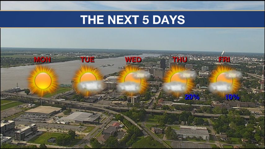 Up Next: The cool weather does not stick around for long. Tuesday afternoon temperatures will be flirting with 80°. More cloud cover will begin to build in on Tuesday and Wednesday ahead of the next old front set to move in later during the week. Temperatures will continue to climb back into the mid-80s by Wednesday. With the warmer temperatures rain will be returning back into the forecast by the end of the week. We are not tracking any total washouts, just some spotty showers as we head into the weekend. Click here to see the 7-day forecast.