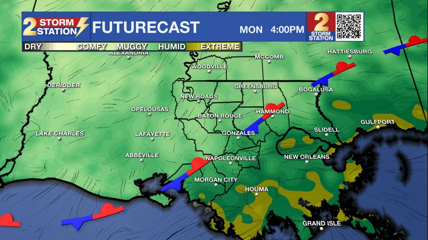 Communities near the tidal lakes or coast will find themselves closer to the front, where more humid conditions reside. It is in these locations where a spotty shower or storm is favored during the heat of the day. Every location will be warm temperature-wise. Look for a high in the low to mid-90s across Metro Baton Rouge, whereas more humid eastern sections may end up a degree or two cooler.