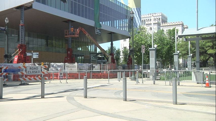 In anticipation of heavy equipment and hydraulic lifts being placed on the site, the City-Parish closed the St. Louis Street crossover on North Boulevard in Town Square at 7:00 p.m. Friday.