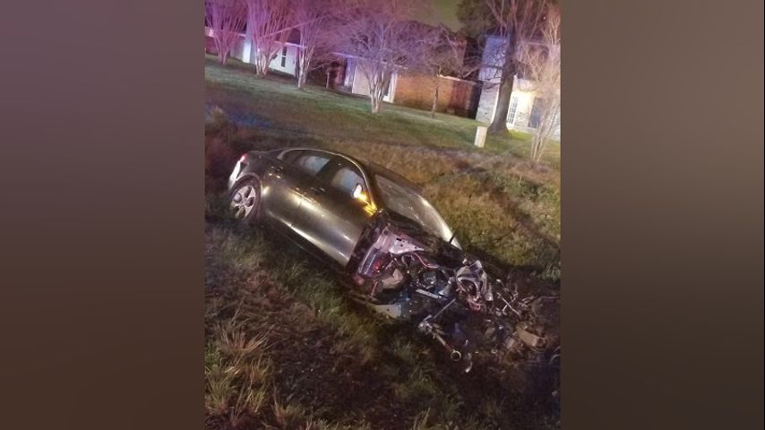 BATON ROUGE - On Wednesday night, a pursuit ended when a suspect crashed into a tree and he and the car's engine were both ejected from the stolen car.