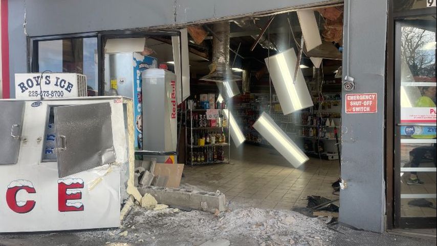 The East Baton Rouge Parish Sheriff's Office said the suspects slammed the stolen bus into the Fast Stop gas station on Joor Road, knocking down a large portion of the front wall. They then entered the store and stole "an unknown amount of cigarettes."