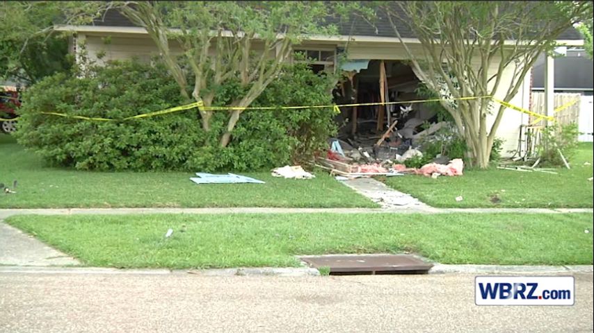 BATON ROUGE - Officials say a vehicle plowed through a home in a residential area off Burbank Drive, early Wednesday morning.