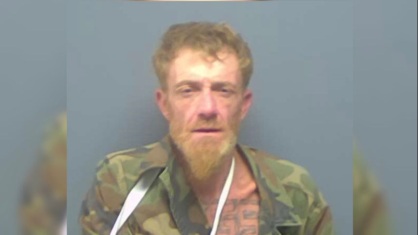 Christopher Delcambre, 51, is described as a white male standing 5-foot-10 and weighing 160 pounds. He is wearing blue pants and a white shirt. He was booked in connection to a drug case and a felony theft case.
