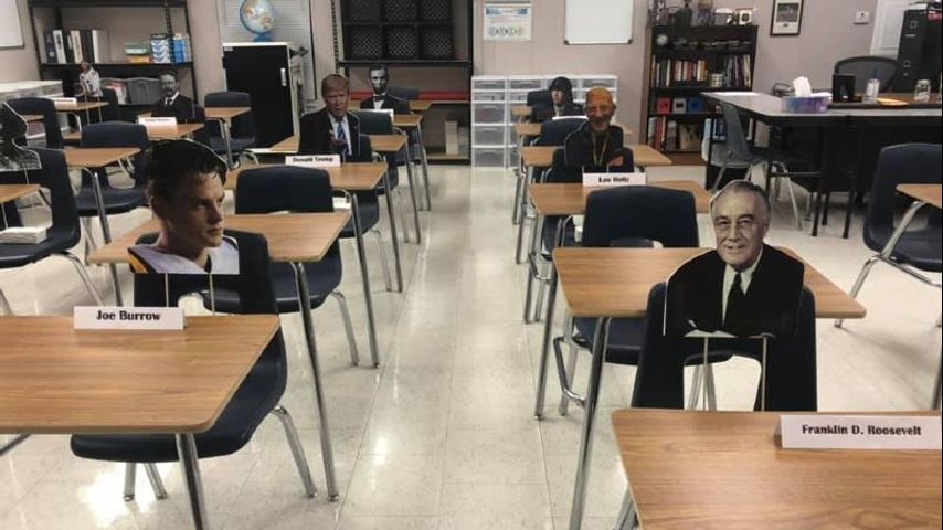 Ms. Starkey sat cut-outs of historical figures in desks, including local heroes like Joe Burrow and presidents of The United States. She says the plan is to change them out to correspond with lessons, eventually adding famous gangsters from the '20s and war generals.