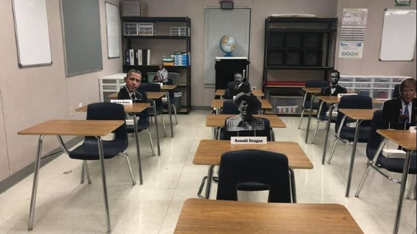 "I have them [the cut-outs] seated in each one of the desks that the students are not allowed to sit in," Ms. Starkey said.