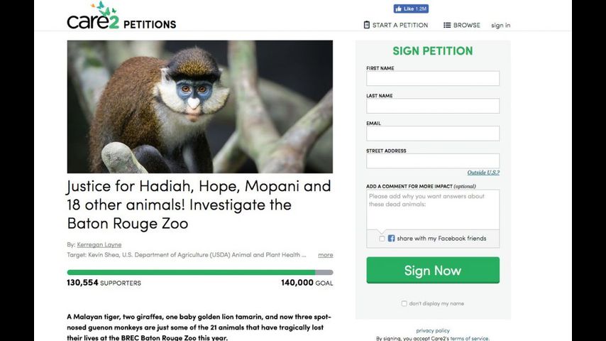 “That ‘investigation’ was headed by other zoos, and found no blame on the part of the BREC BR Zoo,” she writes. “I am creating this petition with the support of my family and friends, and we are asking that the USDA APHIS take action immediately to oversee this zoo and figure out why so many animals are losing their lives, and seriously consider shutting it down if solutions can not be identified.”