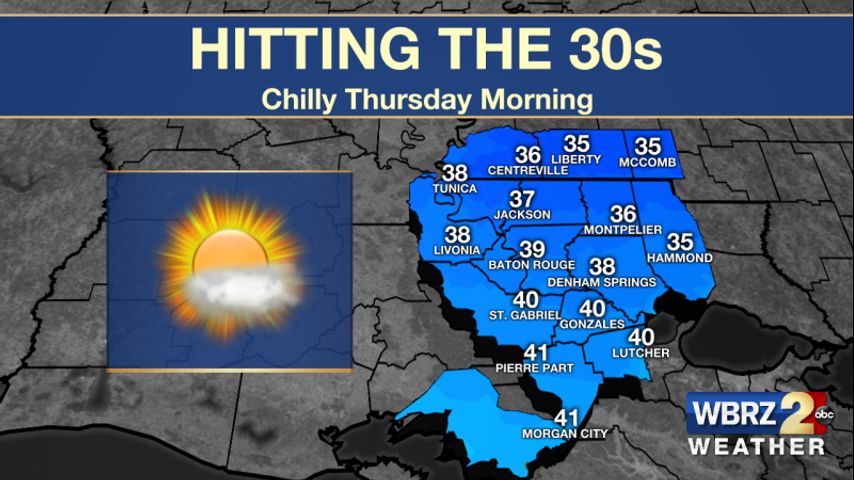 Today and Tonight: There is a Dense Fog Advisory in effect until 9 am for areas south and east of Baton Rouge including Lake Pontchartrain and Lake Maurepas. There is fog extending through Baton Rouge and further north as well into New Roads. Expect some reduced visibility until 9 am. Then, the rest of the rain and the fog will be clearing out. Cooler air is moving in and temperatures will max out in the mid-60s today. Overnight conditions will be clear and temperatures will drop into the upper 30s.