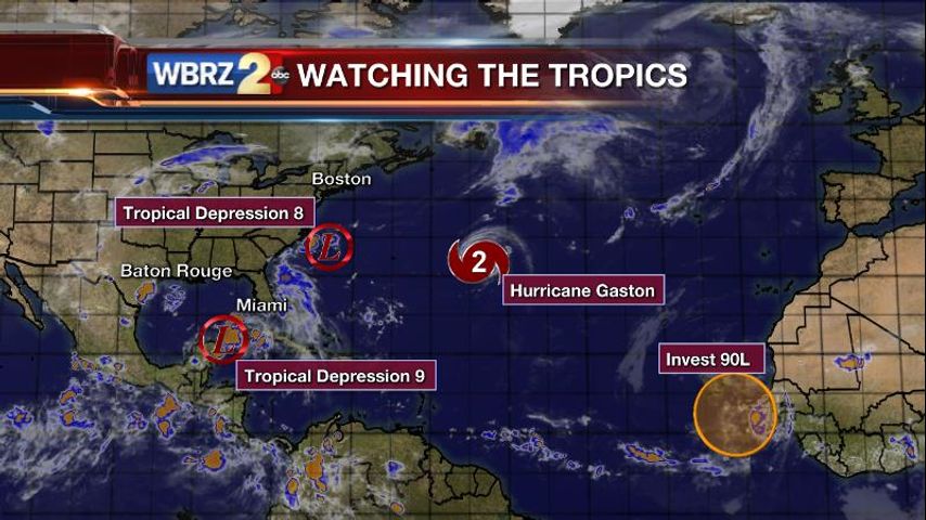 Hurricane Gaston is churning in the open waters of the Atlantic Ocean with maximum sustained winds of 100mph. The storm will move east, northeast and out to sea, speeding up and weakening by the end of the week.