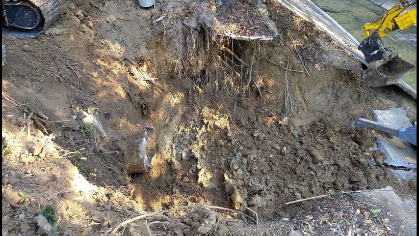 A hole opened up in the corner of her yard--10 years of erosion finally giving way.