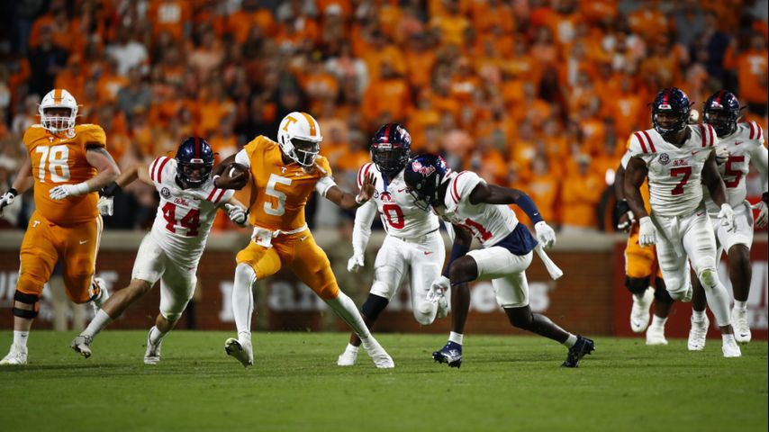 The game stopped during the last minute of the 31-26 loss to No. 14 Ole Miss. Fans were upset over an officiating call. Vols tight end Jacob Warren was ruled down inches shy of a first down, so they began throwing trash on the field.