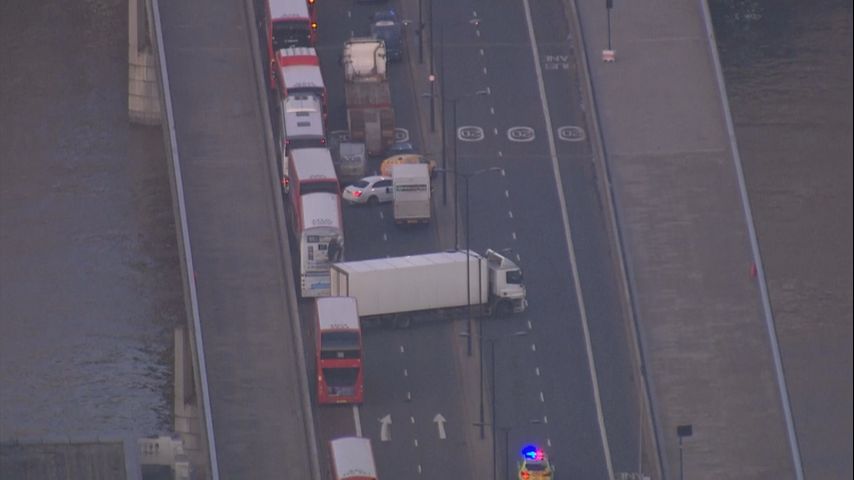 Police said the stabbing happened at an area near the bridge. The fleeing attacker, who was wearing a hoax explosive device, was tackled by members of the public before being shot by police, the Associated Press reported.