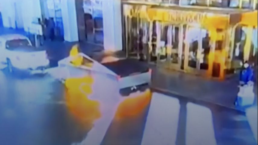 Seven people nearby suffered minor injuries when the Tesla truck exploded. Video showed a tumble of charred fireworks mortars, canisters and other explosive devices crowded into the back of the pickup. The truck bed walls were still intact because the blast shot straight up rather than to the sides.