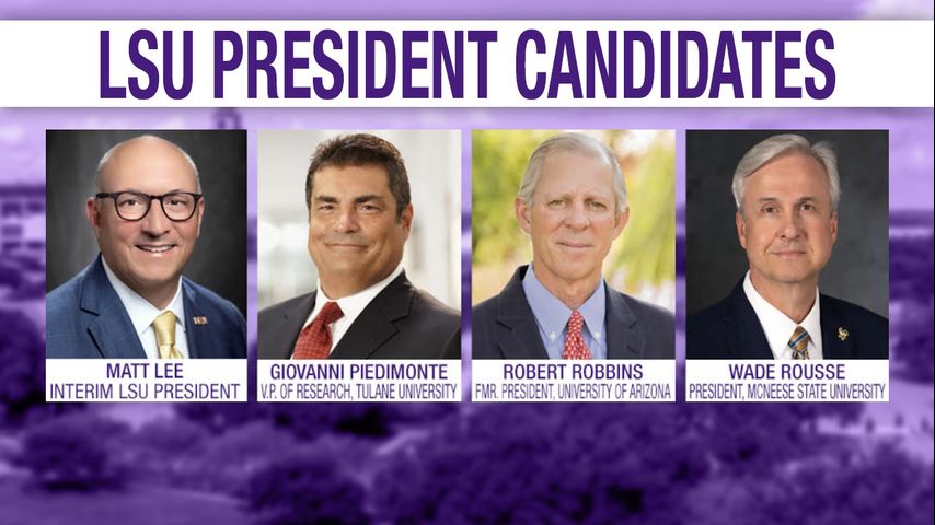 The search committee will meet with interim LSU president Matt Lee, Dr. Giovanni Piedimonte of the Tulane School of Medicine, former University of Arizona president Dr. Robert Robbins and McNeese president Wade Rousse. Piedimonte and Robbins are medical doctors; Lee and Rousse hold Ph.Ds.