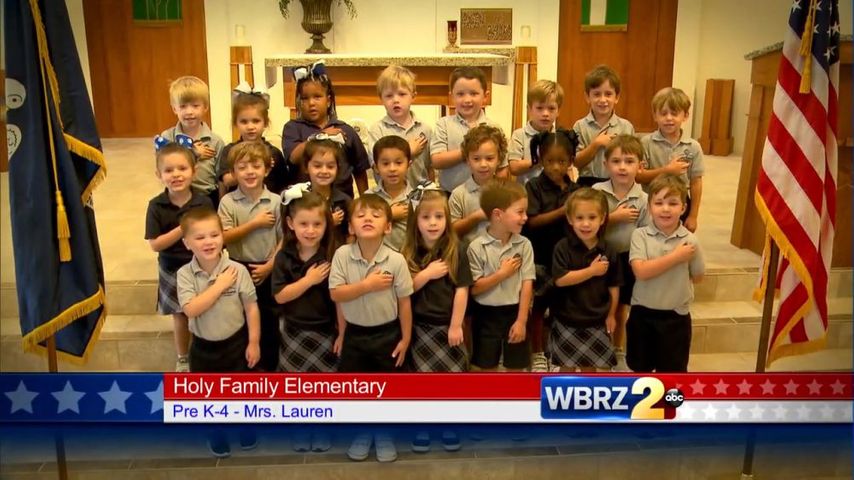 BATON ROUGE- Today's Pledge of Allegiance comes from the PreK-4 class at Holy Family School.