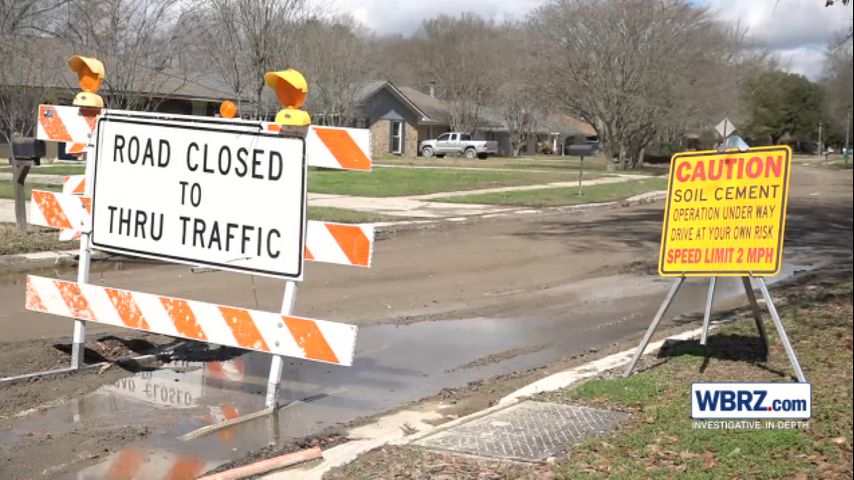 WBRZ visited The Willows on Feb. 5. The roads were covered in mud and piles of dirt. Residents said there were days when they could not leave the area due to construction work.
