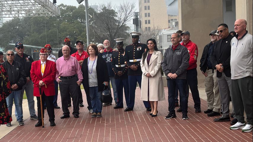 The tribute honors veterans of East Baton Rouge Parish by transforming the Davis Rhorer Plaza at City Hall into a massive display featuring red hearts in acknowledgement of Valentine's Day, each bearing the name and branch of service of a local veteran.