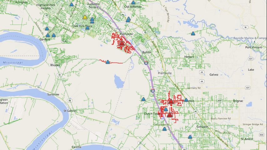About 1,600 outages are still being reported in East Baton Rouge while another 900 are reported in Ascension, primarily around the Dutchtown area.