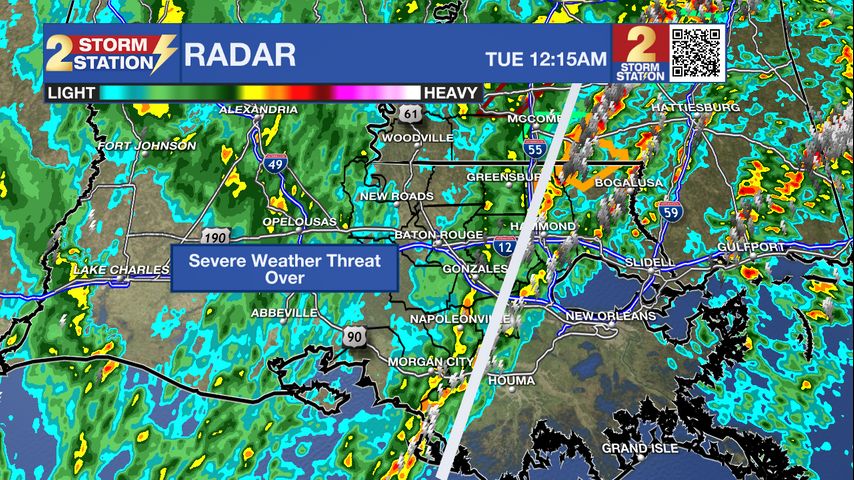 Tonight & Tomorrow: As of 12:15am there were still showers and some thunderstorms around the area, but the severe threat has come to an end. Scattered to numerous showers will be possible throughout the night. Rain chances will slowly decrease as we get closer to daybreak. Tuesday will be chilly. Despite some returning sunshine, high temperatures will likely stay in the 50s. It will stay breezy with northwest winds of 10-20mph.