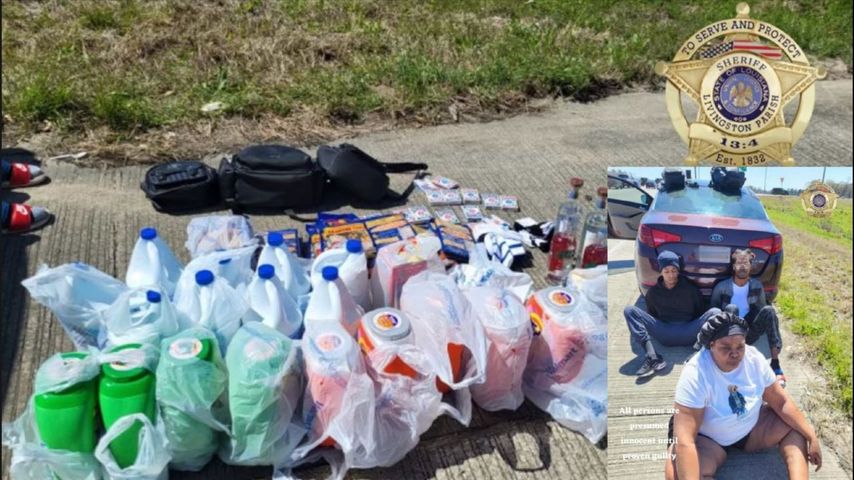 LVININGSTON — Three people were taken into custody on Tuesday after stealing cleaning supplies and alcohol from major retail stores in Livingston Parish, according to deputies.
