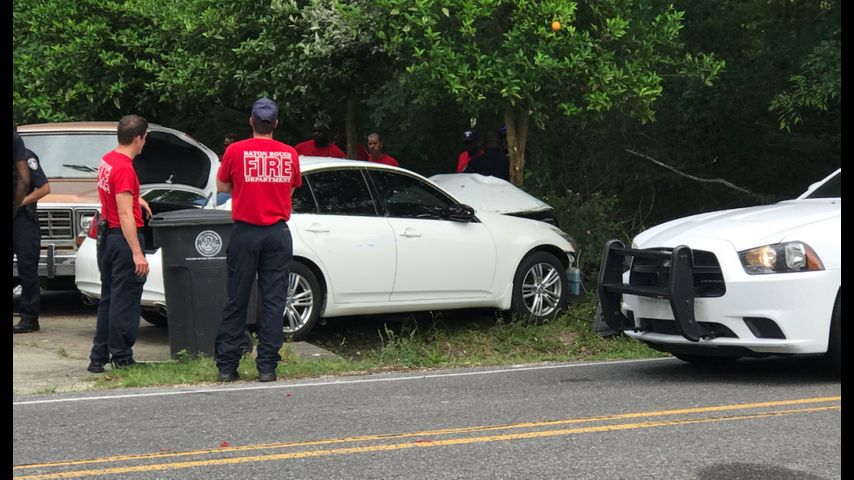 According to the Baton Rouge Police Department, the driver lost control of their vehicle and hit a second vehicle parked in a driveway in the 10300 block of Elm Grove Garden Drive. The second vehicle pinned two men sitting on the ground to a tree.