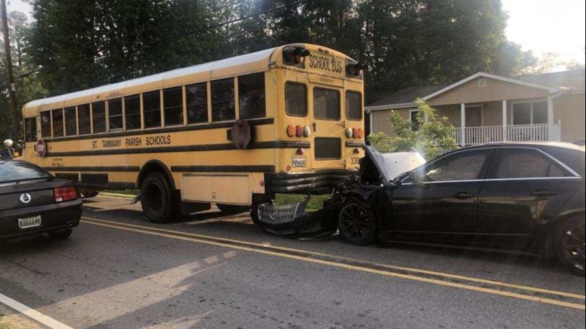 The St. Tammany Parish Sheriff's Office said the three students on the bus were taken to a hospital, along with the driver of the car and her two juvenile passengers, after the bus was rear-ended. All six of those transported had reportedly minor injuries.